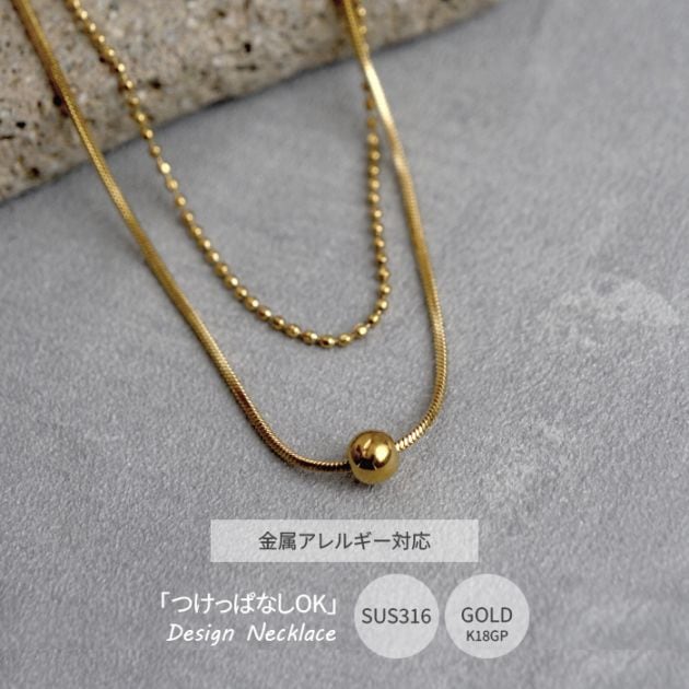 ネックレス ステンレス レディース つけっぱなし ユニセックス 金属アレルギー 18K コーティング プレゼント サイズ調整可
