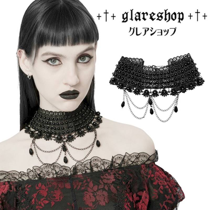 glareshop グレアショップ「F」Zn064-B■ゴシック ゴージャス 上品 レース ビーズチョーカー ネックレス パーティ...