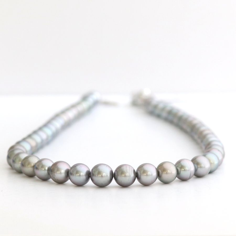 SVタヒチ産黒蝶真珠ネックレス【大きさ8.0-10.1mm・長さ44cm】オーシャンブルー鑑別<SK222104>