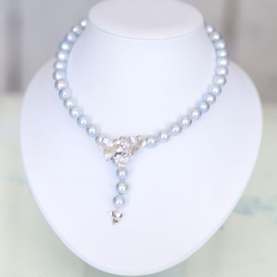 煌めくナチュラルブルー9㎜-9.8㎜ネックレス【あこや真珠】NBKS_390
