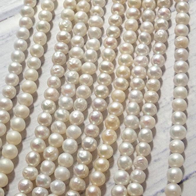 【255. セミラウンド【3A】 淡水パール ビーズ 連】サイズ 約5.8mm粒 ホワイト 真珠 ニアラウンド
