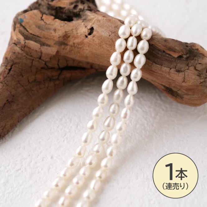 淡水パール ライス型 6×4mm ホワイト ビーズ 一連 35cm