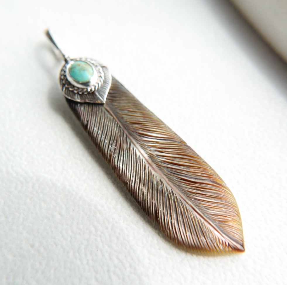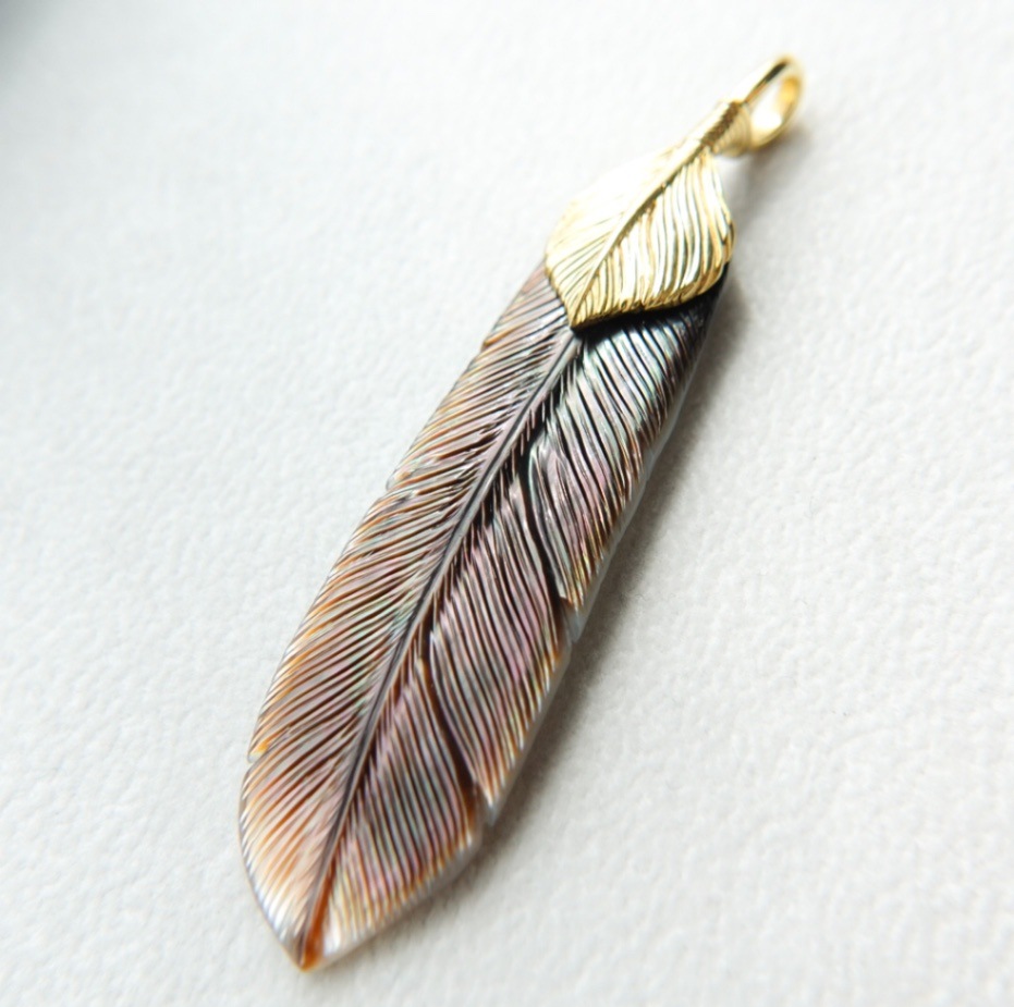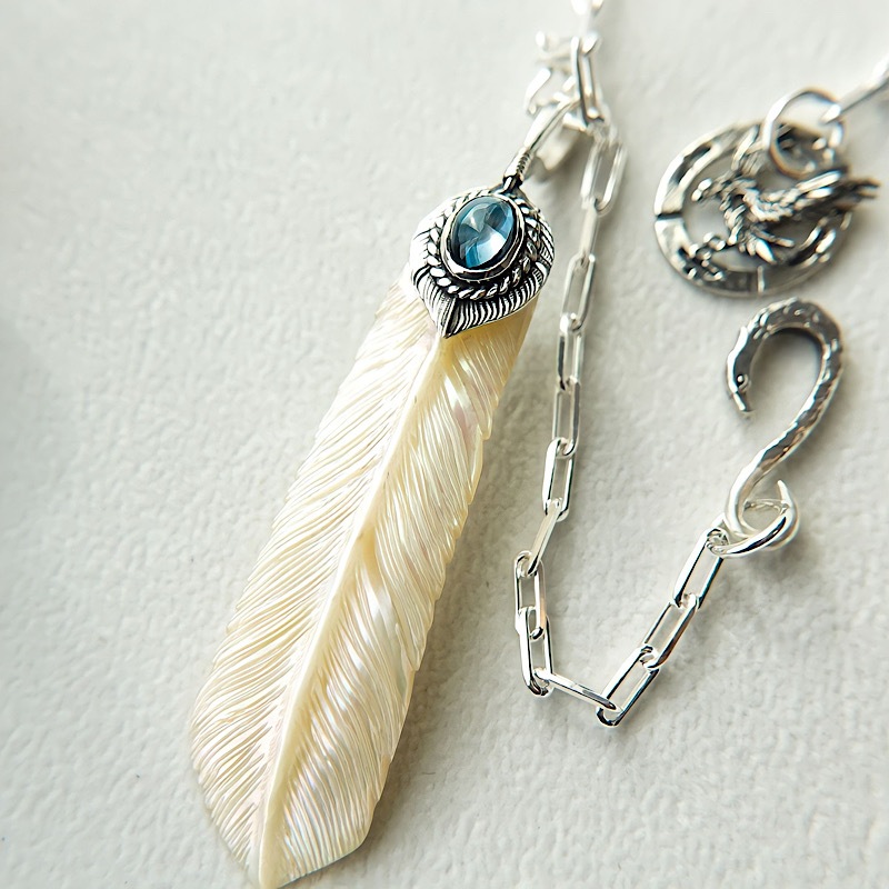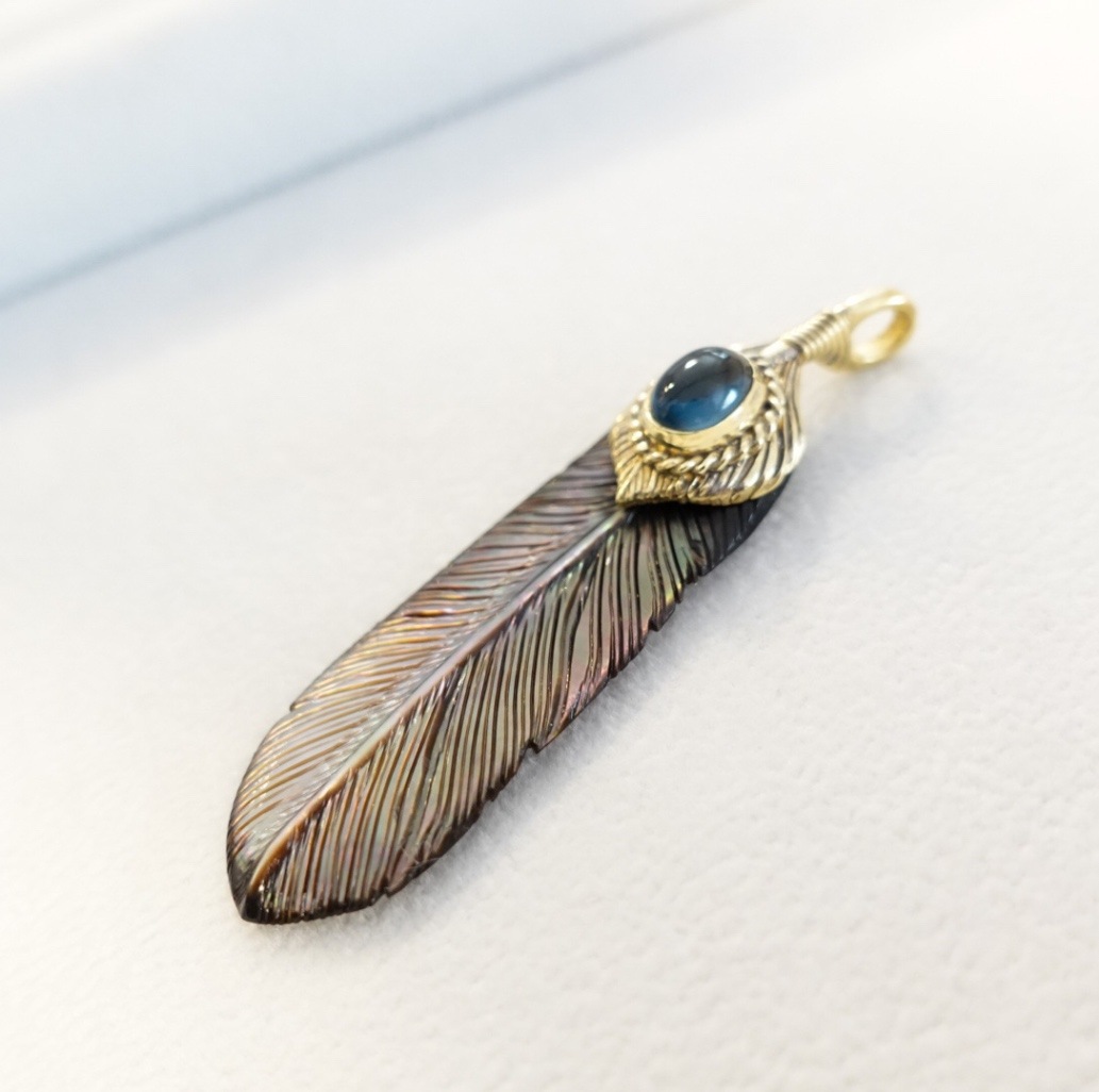 受注制作 黒蝶貝のフェザーネックレス 【the black hawk】