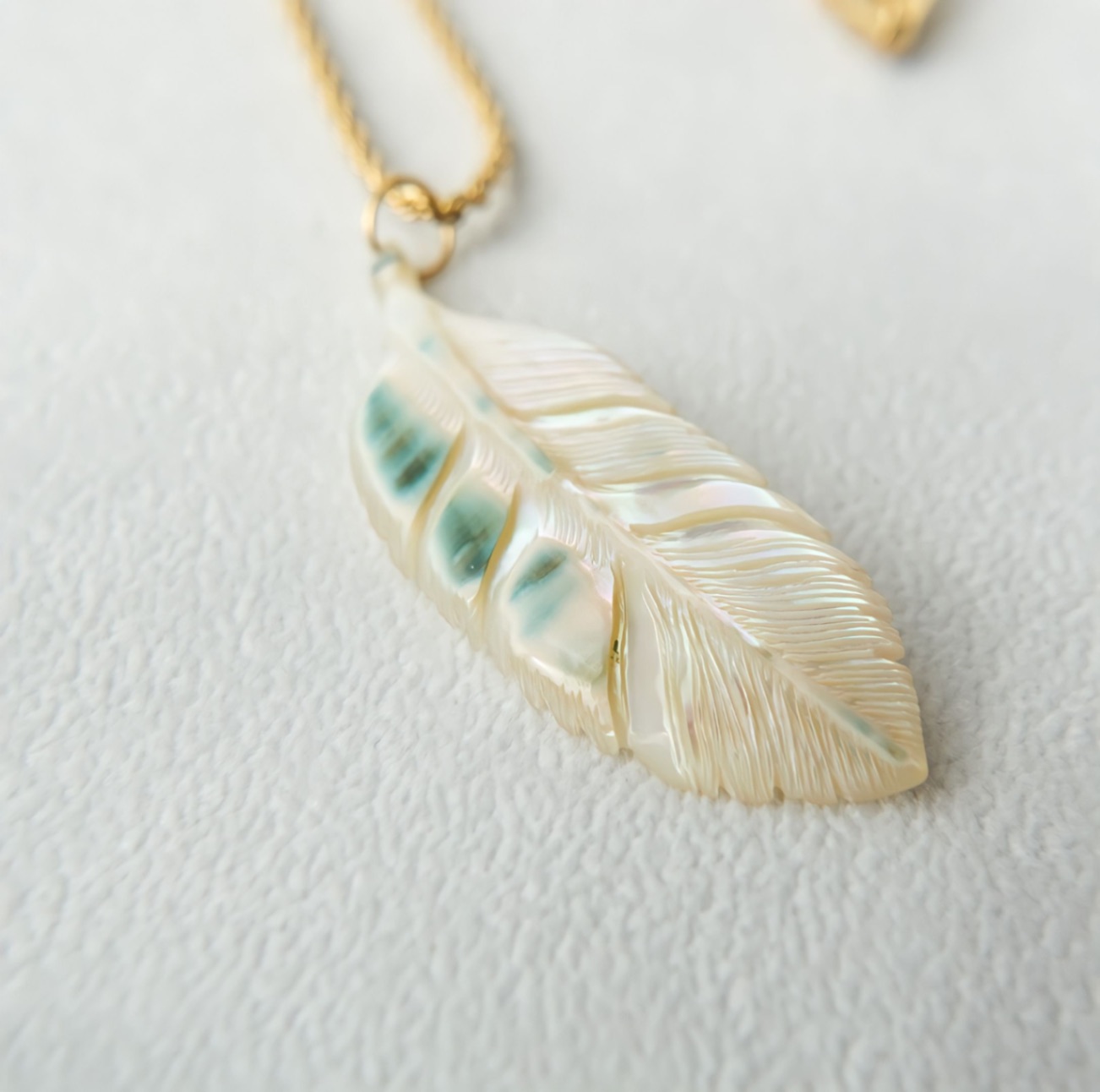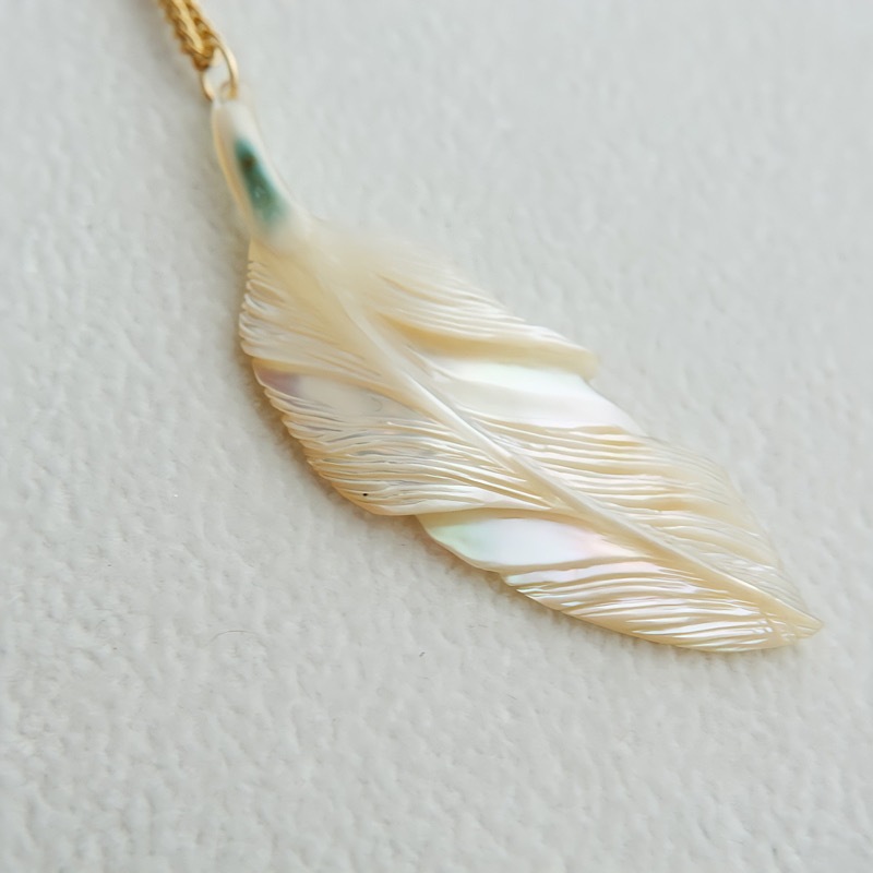一点物 夜光貝のグリーンラインフェザーネックレス
