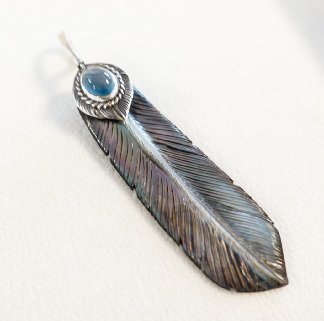 受注制作 黒蝶貝のフェザーネックレス 【the hawk blue】