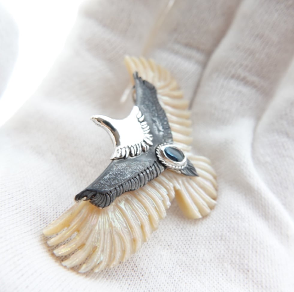 オーダー用 KID様 夜光貝のブラック燻しイーグルネックレス 【roebelenii】