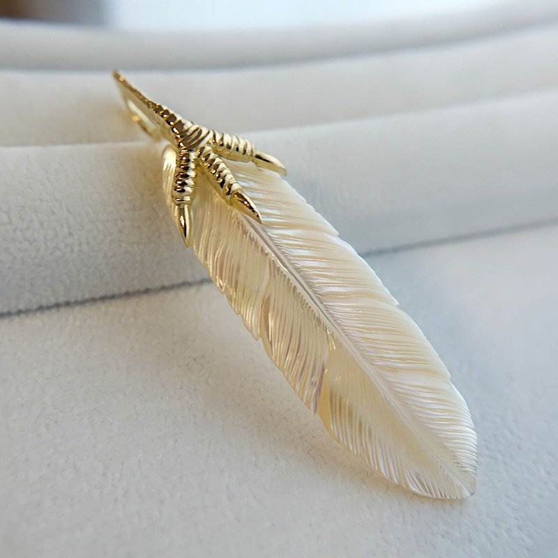 受注制作 夜光貝のイーグルフックフェザーネックレス 【Claws in the sky】