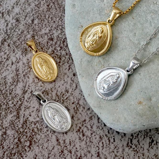 ステンレス製 ペンダントトップ 【76. マリア メダイ】金属アレルギー対応 奇跡 不思議 メダル コイン パーツ ネックレス ハ...