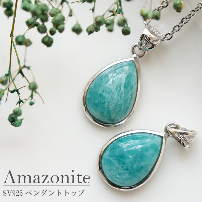 アマゾナイト ドロップ型 ペンダントトップ 天然石 ペルー産 パワーストーン 癒し アクセサリー ハンドメイド レディース 爽やか...