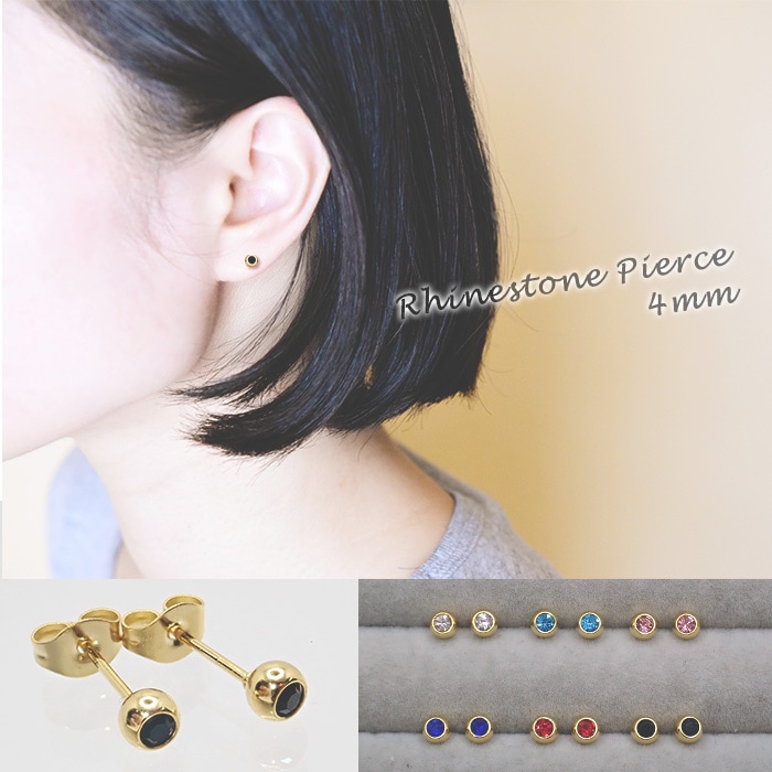 金属アレルギー対応 118. ボールピアス(4mm)ラインストーン付 6色 ゴールド ステンレス 国内発送