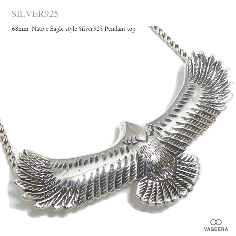 68mm 大型ネイティブ リアル イーグル(鷲) シルバー925 ペンダント トップ 【インディアンジュエリー/SILVER925...