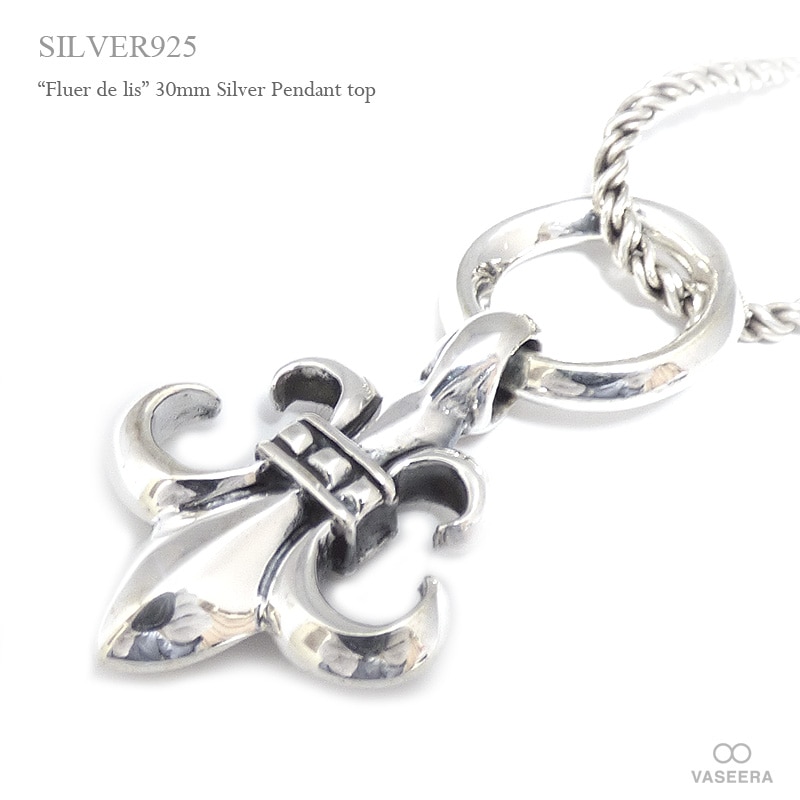 30mmフルール・ド・リス(ユリの紋章) 両面仕上げ シルバー ペンダント トップ 【シルバー925/SILVER925 /ペンダ...
