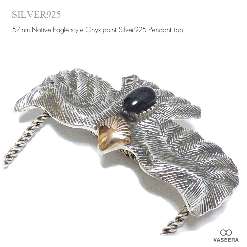 ネイティブ 57mm 大型イーグル(鷲) オニキス埋め込み シルバー925 ペンダント トップ 【インディアンジュエリー/SILV...
