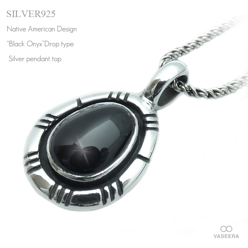 ネイティブ系 37mmドロップ型 オニキス埋め込み シルバー ペンダント トップ 【シルバー925/SILVER925 /ペンダン...