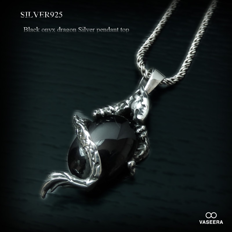 ブラックオニキス(黒瑪瑙) シルバードラゴン シルバー ペンダント トップ 【シルバー925/SILVER925 /ペンダントヘッ...