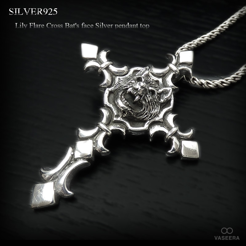 バットフェイス(コウモリ) フレアクロス シルバー ペンダント トップ 【シルバー925/SILVER925 /ペンダントヘッド】