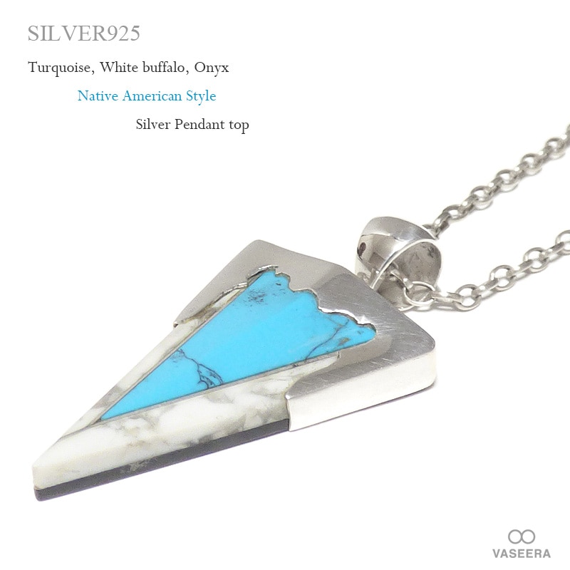 天然石3種(ターコイズ/オニキス/ホワイトバッファロー) トライアングルプレート ネイティブ系 シルバー925 ペンダント ト...