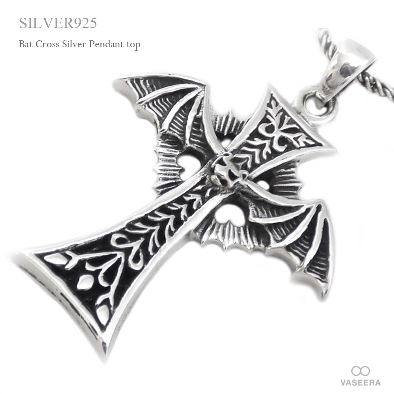 バット(コウモリ) クロス シルバー ペンダント トップ 【シルバー925/SILVER925 /ペンダントヘッド】