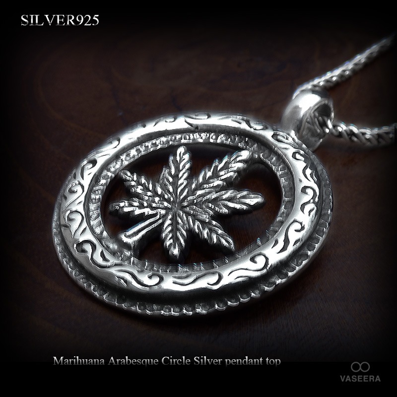透かし彫りマリファナ アラベスク(唐草)サークル シルバー ペンダント トップ 【シルバー925/SILVER925 /ペンダント...