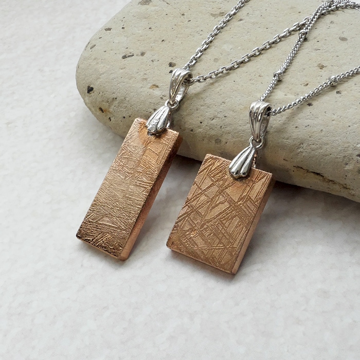 ギベオン ナミビア産 長方形 SV925 シルバー製 ピンクゴールド ペンダント トップ ネックレス 日本製