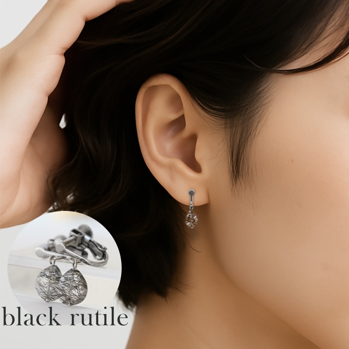 ブラックルチル カット クリップ式 イヤリング 天然石 ブラジル産 日本製 4月誕生石 ルチル レディース アクセサリー カジュア...