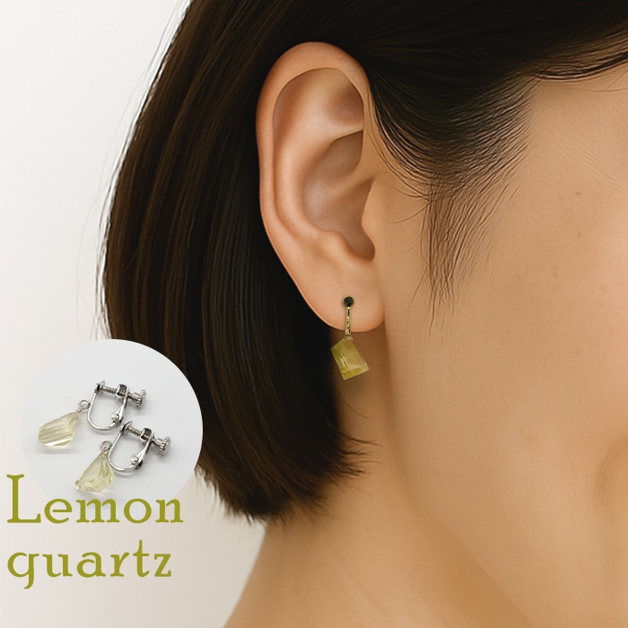 レモンクォーツ 多角形カット ネジバネ式 イヤリング 天然石 ブラジル産 日本製 6月誕生石 レディース アクセサリー ピアス穴不...
