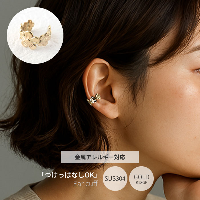 【SUS304ステンレス製】フラワーモチーフ イヤーカフ ペア売り 金属アレルギー対応