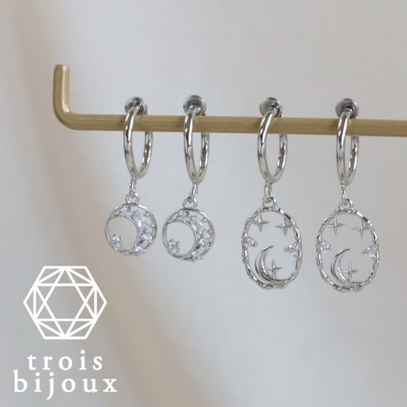 K18コーティングフープイヤリング ムーンスタージルコニア