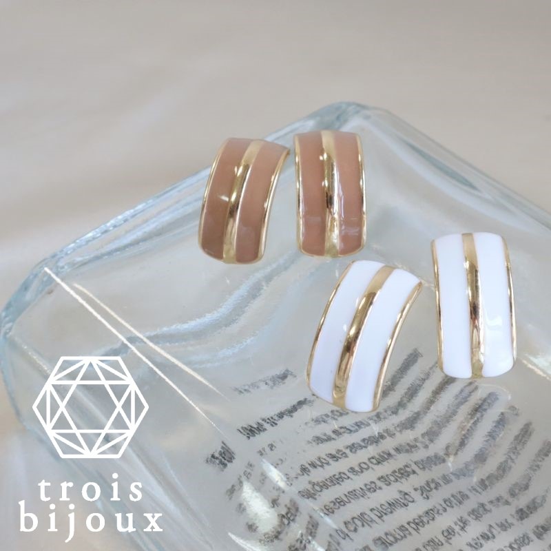 【新色追加】 イヤリング K18コーティング スクエアオーバル クリスタルストーン