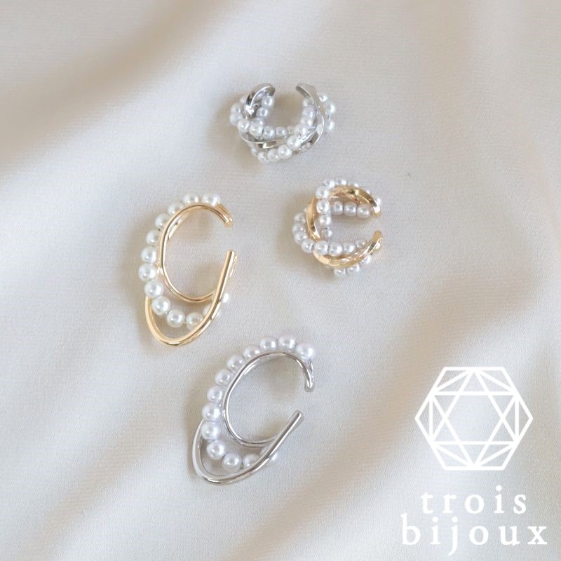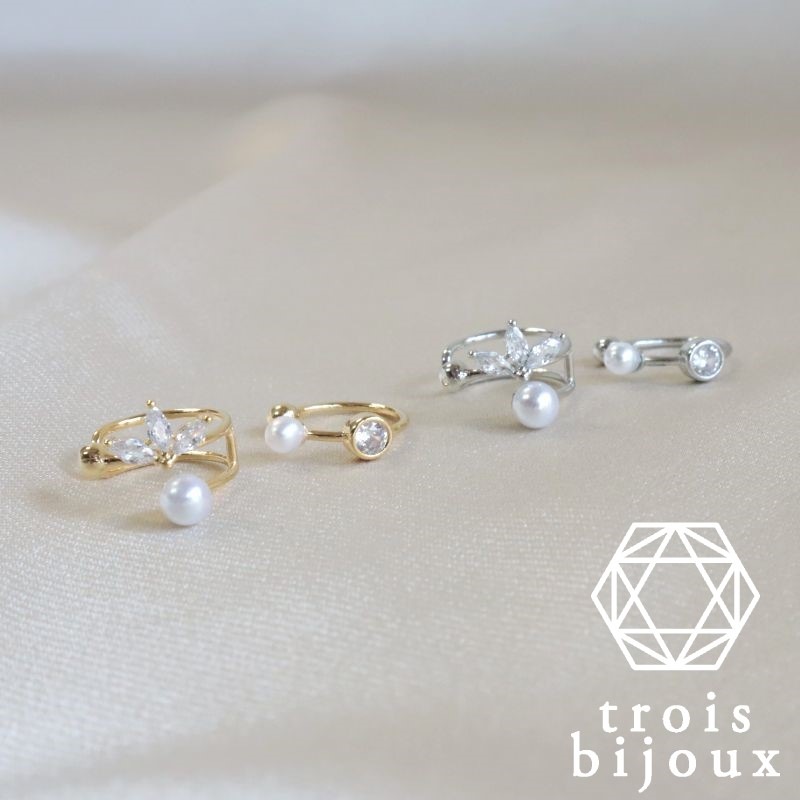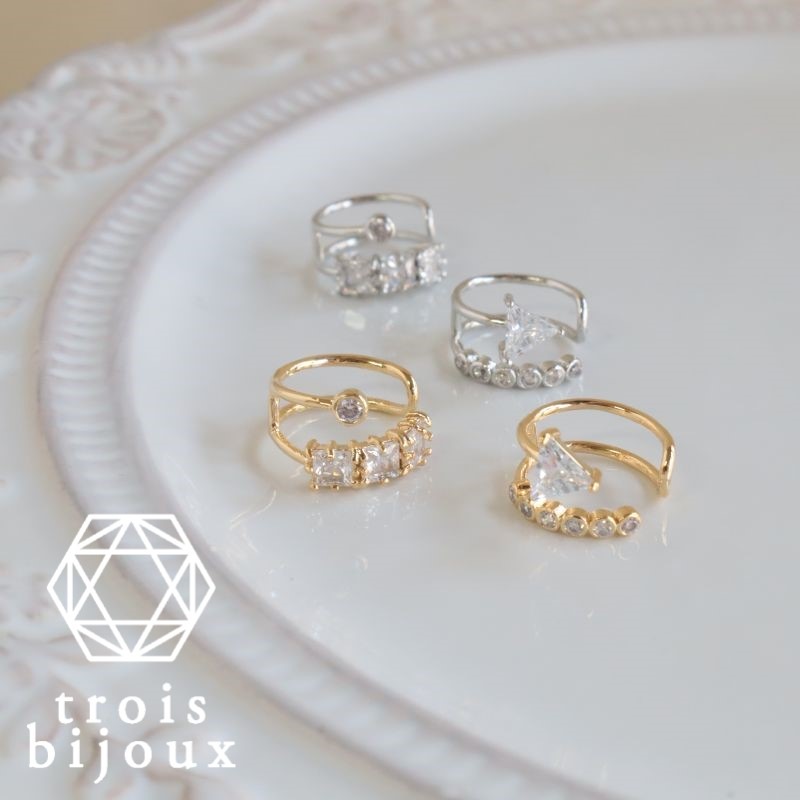 【単品販売(一個)】 4mm幅 3連ジルコニア埋め込み リングフープピアス風 イヤーカフ/イヤークリップ 【イヤカフ/サージカルス...