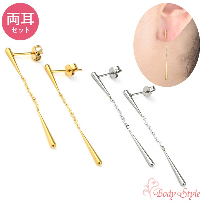 【両耳セット】 ピアス 揺れる チェーン モチーフ サージカルステンレス シルバー ゴールド シンプル 大人 おしゃれ デイリー ...