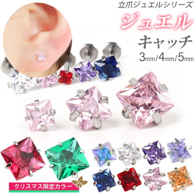 【クリスマス限定カラー入荷!】ジュエル キャッチ パーツ 3mm 4mm 5mm ボディピアス 軟骨ピアス 角 スクエア 四角 カ...