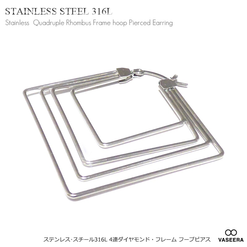 【単品販売(一個)】 4連ダイヤモンド・フレーム(菱型) フープピアス【ステンレスピアス/サージカルステンレス/S.STEEL31...