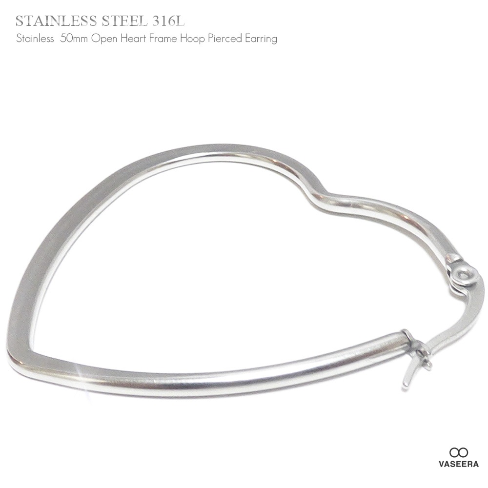 【単品販売(一個)】 50mm オープンハート(ハート・フレーム) フープピアス 【ステンレスピアス/サージカルステンレス/S.S...