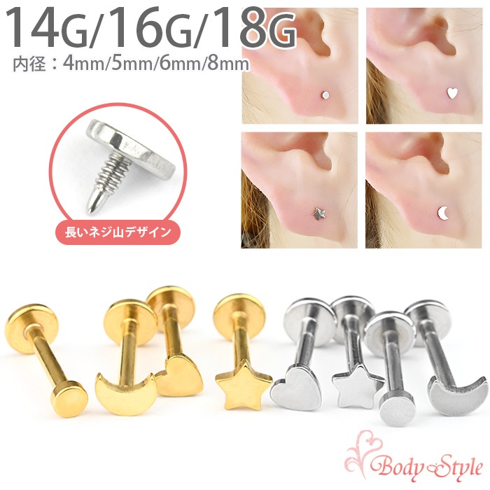 【短いネジ山】軟骨ピアス 14g 16g 4種類 星 月 ハート 丸 ボディピアス ラブレットピアス ラブレット ピアス ラブレッ...