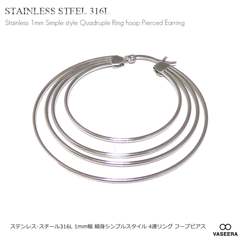 【単品販売(一個)】 1mm幅 シンプル リング 4連 フープピアス 【ステンレスピアス/サージカルステンレス/S.STEEL3...
