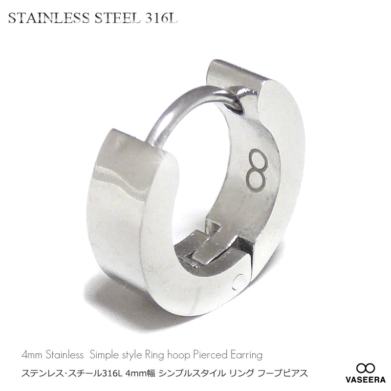 【単品販売(一個)】 4mm幅 シンプルスタイル リング フープピアス 【 ステンレスピアス/サージカルステンレス/S.STEE...