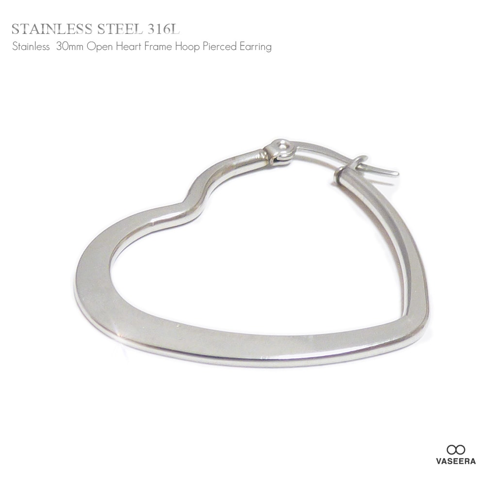 【単品販売(一個)】 30mm オープンハート(ハート・フレーム) フープピアス 【ステンレスピアス/サージカルステンレス/S.S...
