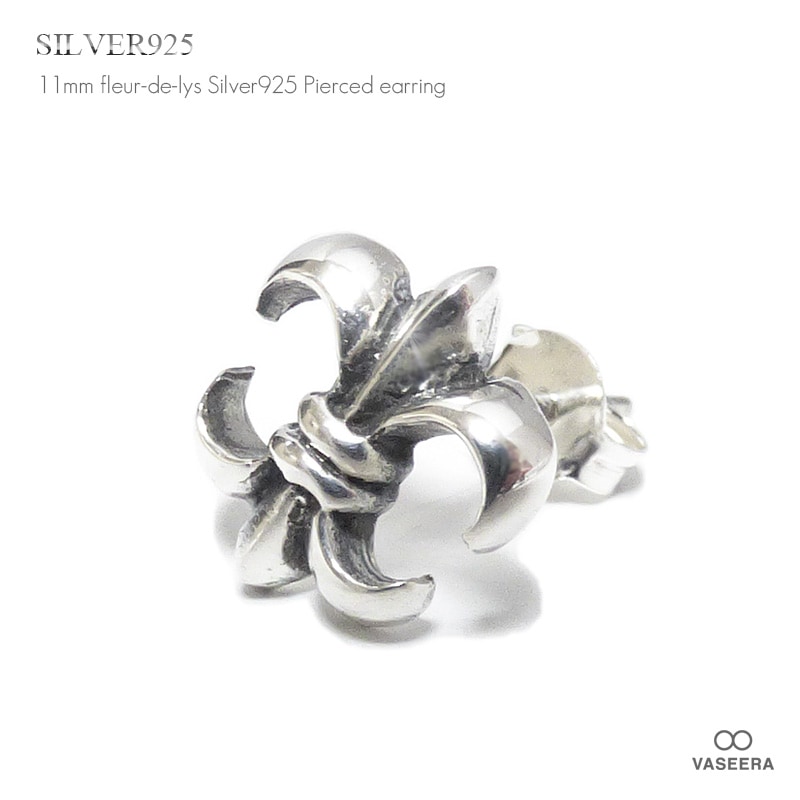 【単品販売(一個)】 11mm フルール・ド・リス(ユリの紋章) シルバー925 スタッドピアス 【シルバーピアス / SIL...