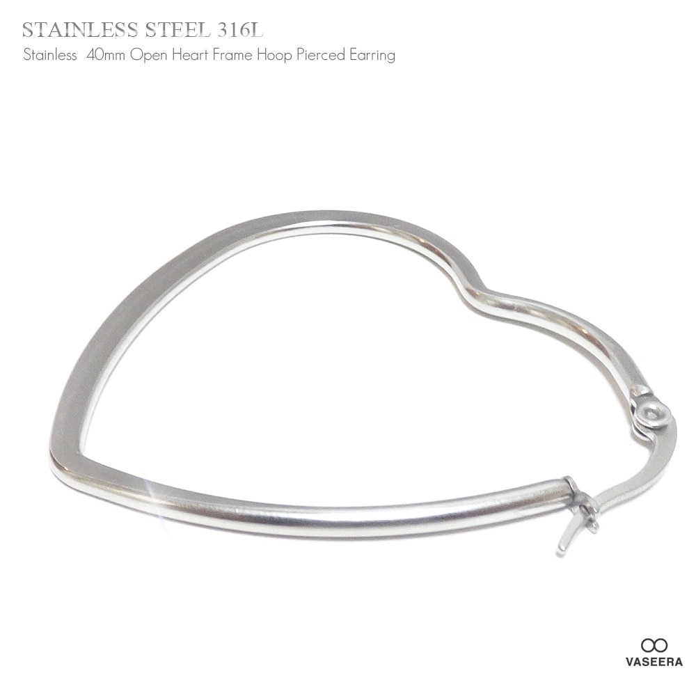 【単品販売(一個)】 40mm オープンハート(ハート・フレーム) フープピアス 【ステンレスピアス/サージカルステンレス/S.S...