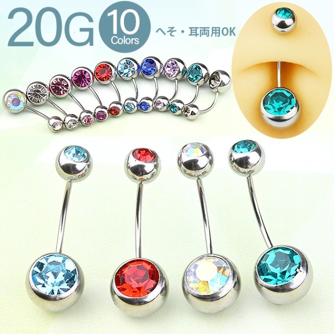 へそピアス かわいい 20g ボディピアス シンプル 20ゲージ ダブルジュエル ピアス 耳たぶ 軟骨ピアス 軟骨 耳用 イヤーロ...