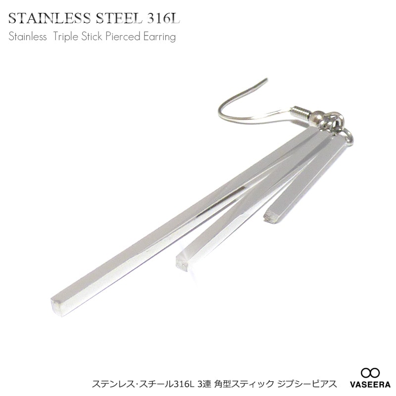 【単品販売(一個)】 3連 角型スティック ジプシーピアス/フックピアス 【ステンレスピアス/サージカルステンレス/S.STEE...
