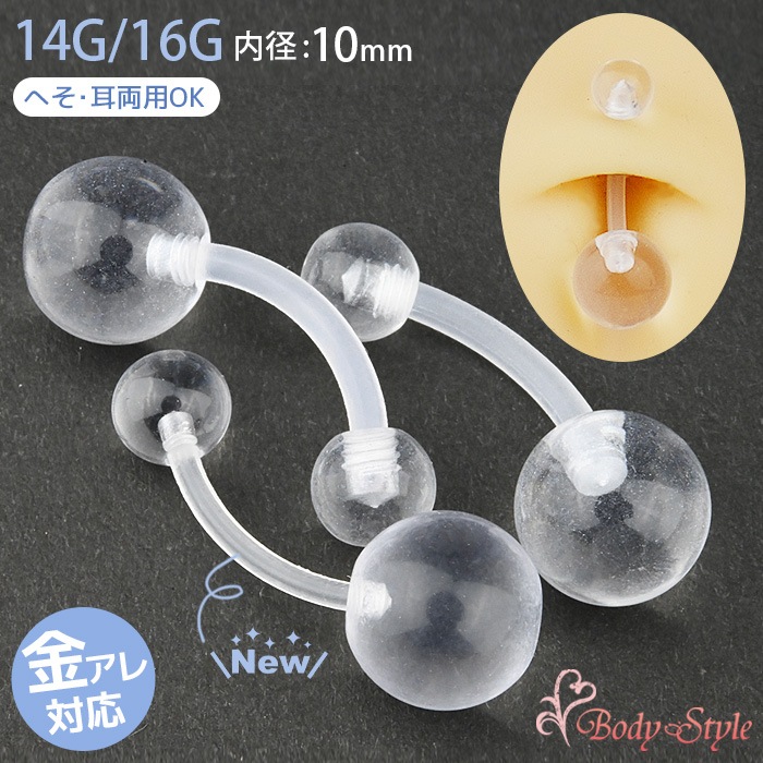 透明ピアス へそピアス 14g ボディピアス 目立たない ヘソピ へそピ ヘソピアス バイオプラスト バナナバーベル カーブバーベ...