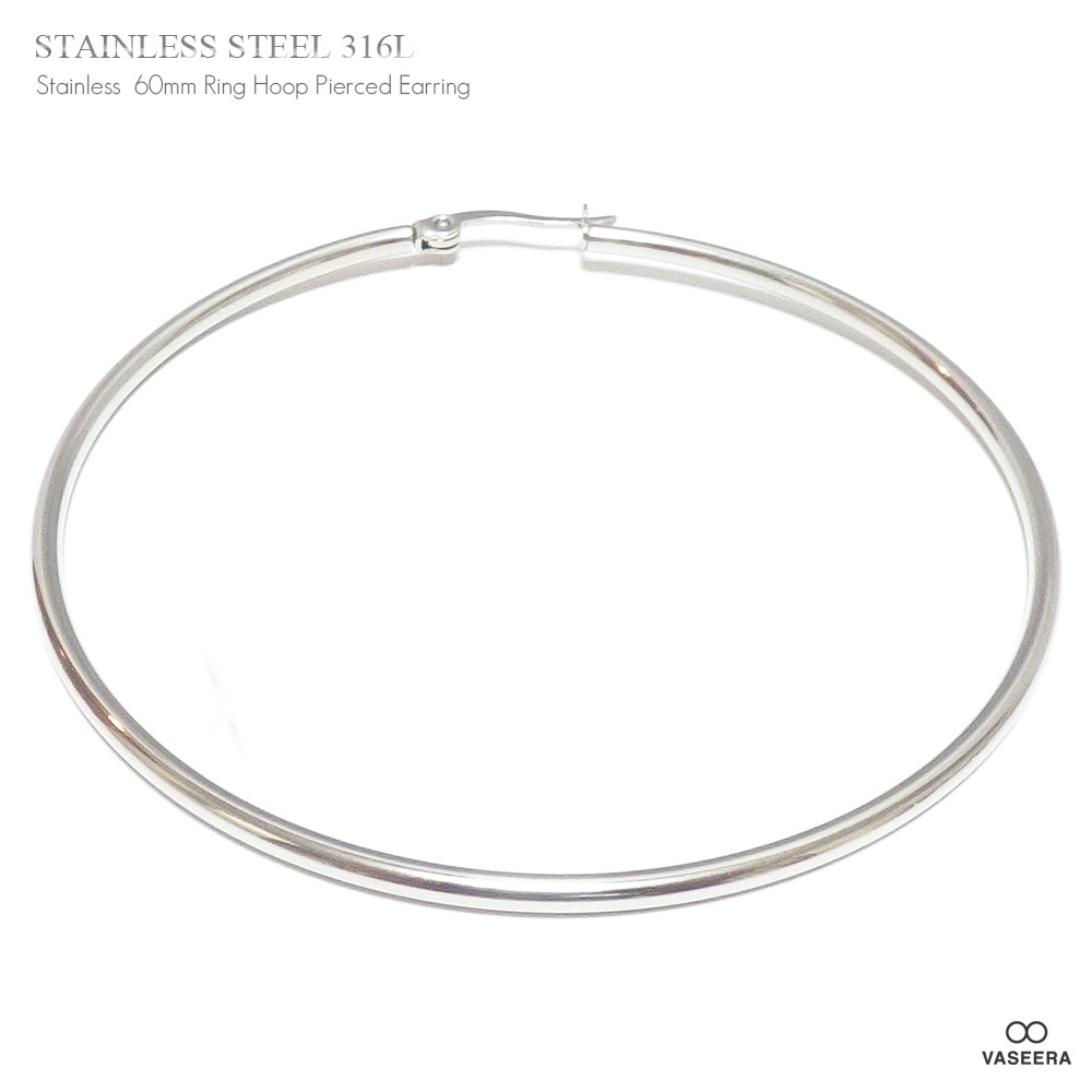 【単品販売(一個)】 60mm シンプルリング 2mm幅 フープピアス 【ステンレスピアス/サージカルステンレス/S.STEEL3...