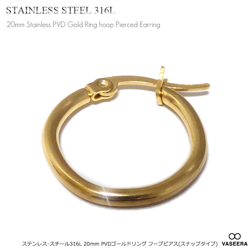 【単品販売(一個)】 2mm幅 20mmシンプルゴールドリング フープピアス スナップピアス 【ステンレスピアス/サージカルステン...