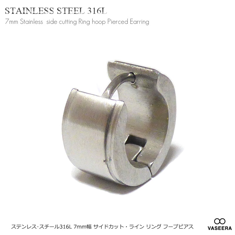 【単品販売(一個)】 7mm幅 サイドカットライン リング フープピアス 【ステンレスピアス/サージカルステンレス/S.STEEL...