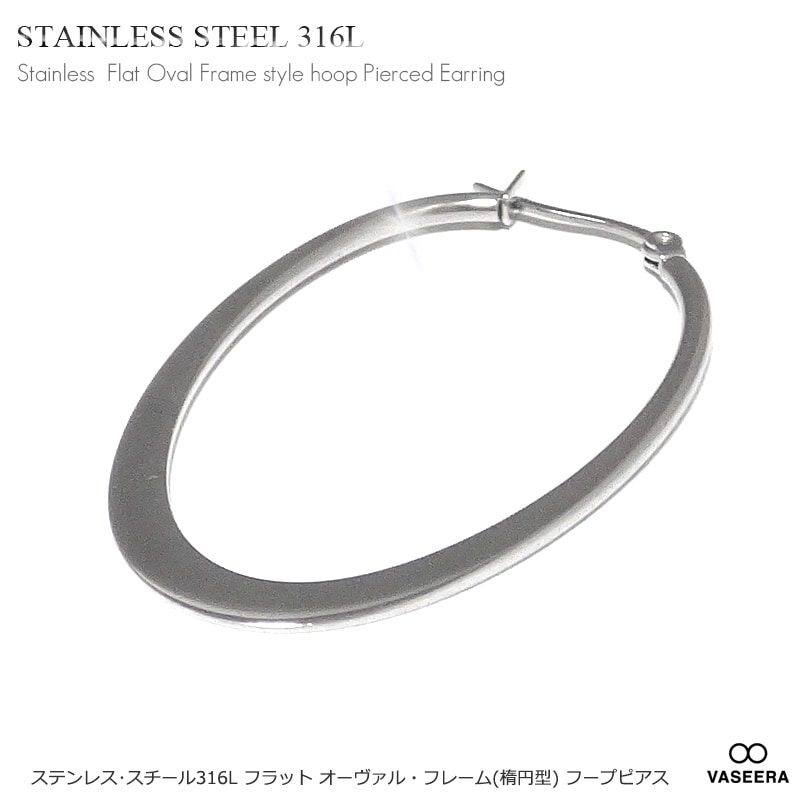 【単品販売(一個)】 フラット オーヴァル・フレーム(楕円型) フープピアス【ステンレスピアス/サージカルステンレス/S.STEE...