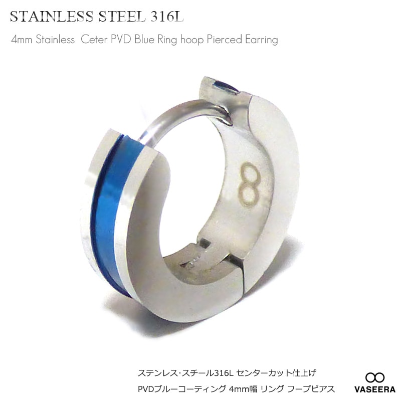 【単品販売(一個)】 4mm幅 センターカット PVDブルーコーティング仕上げ リング フープピアス 【ステンレスピアス/サージカ...