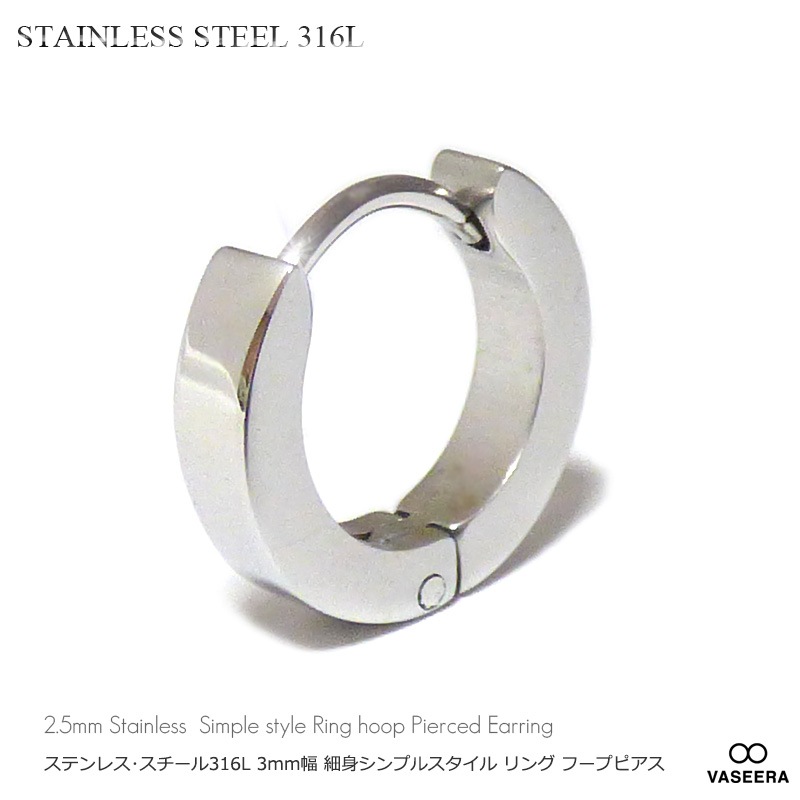 【単品販売(一個)】 3mm幅 細身シンプルスタイル リング フープピアス 【ステンレスピアス/サージカルステンレス/S.STEE...