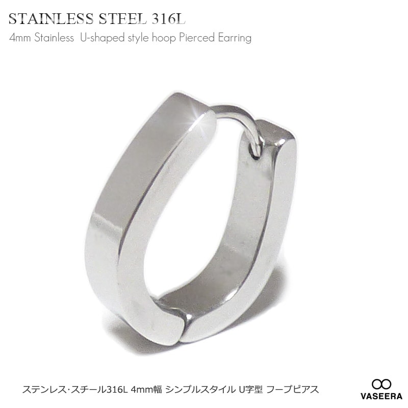 【単品販売(一個)】 4mm幅 U字(馬蹄)型 フープピアス【ステンレスピアス/サージカルステンレス/S.STEEL316L】